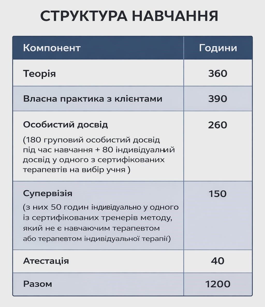 Кожен модуль має терапевтичний статус і проходить у безпечному професійному середовищі.