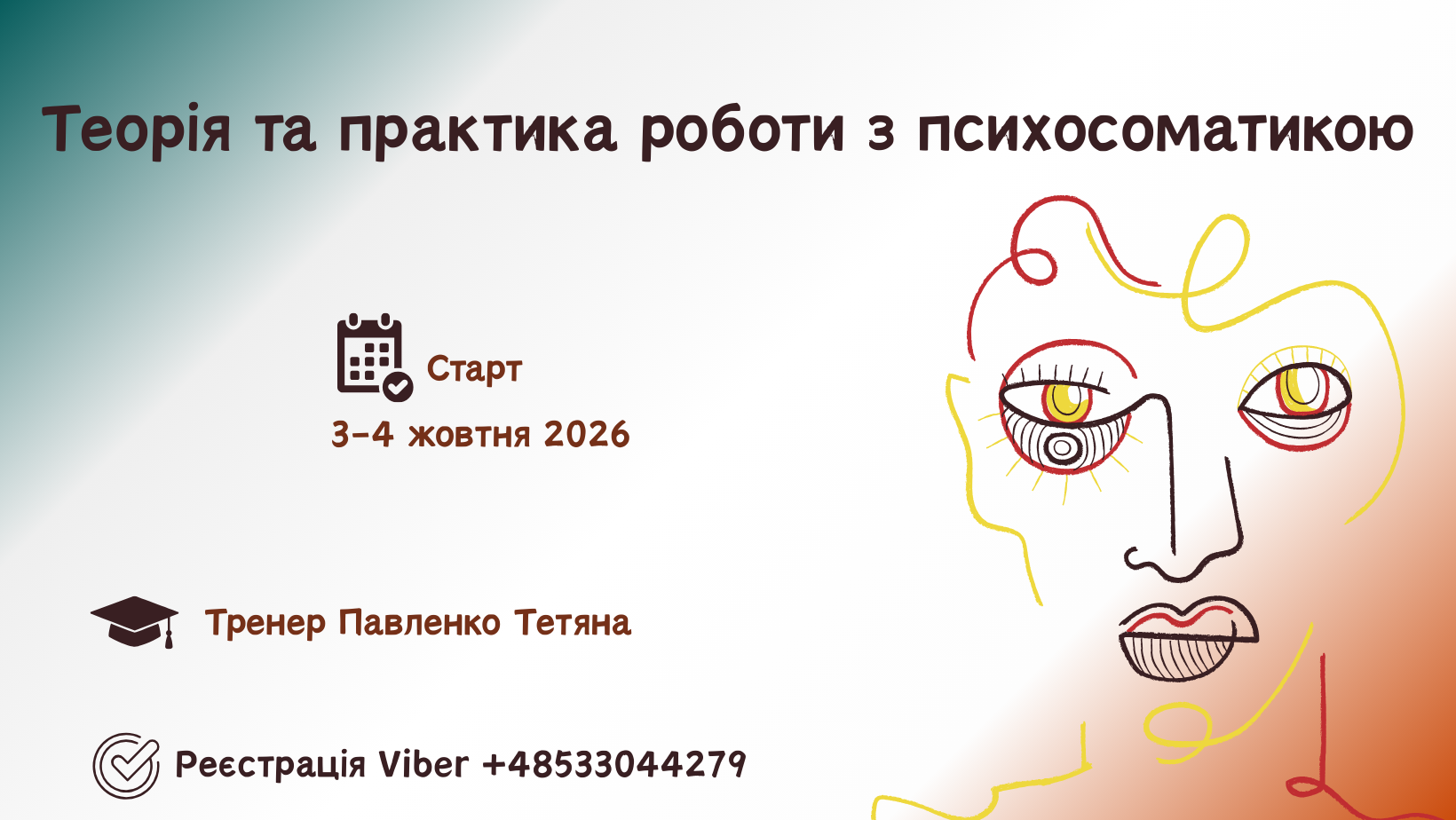 - попрацюєте з особистими запитами у темі психосоматики;