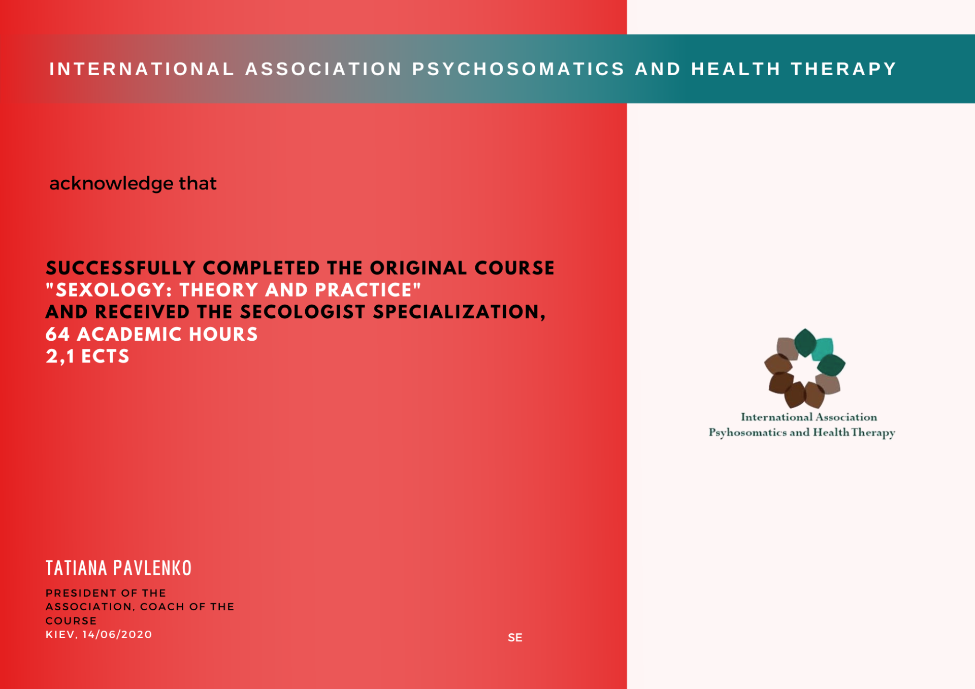❗️ Після закінчення курсу ви отримуєте сертифікат підвищення кваліфікації від «МІЖНАРОДНА АСОЦІАЦІЯ ПСИХОСОМАТИКИ ТА ТЕЛЕСНОЇ ТЕРАПІЇ» та автоматично СТАВАЙТЕ ЧЛЕНАМИ АСОЦІАЦІЇ❗️.